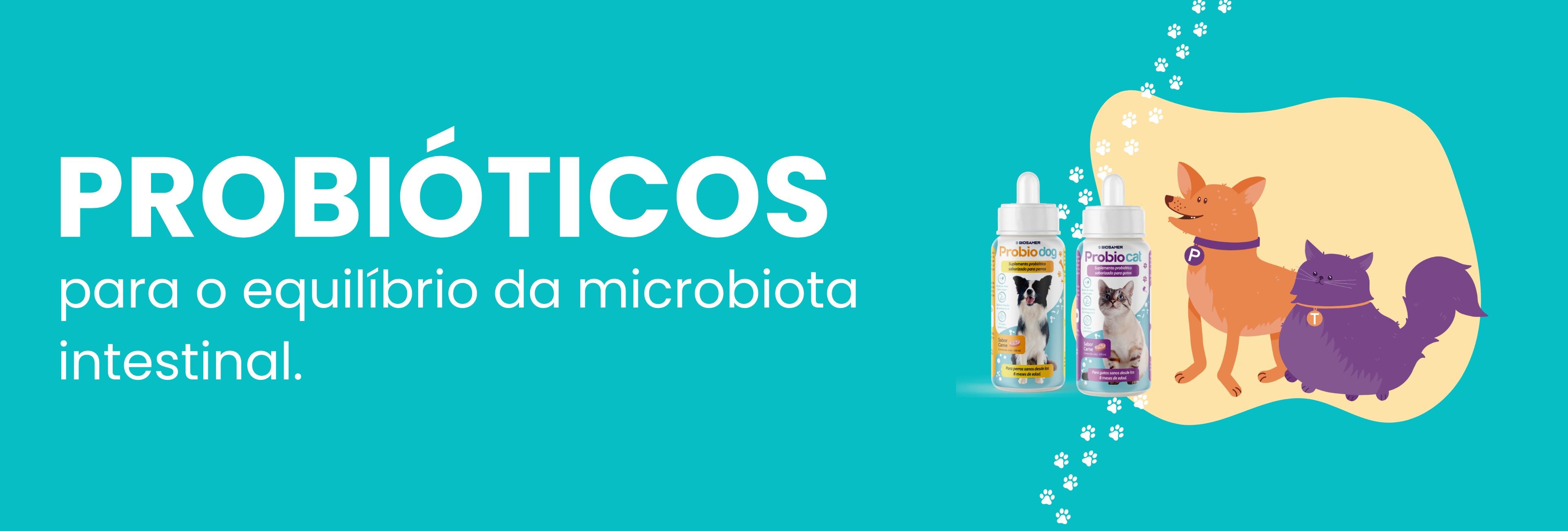 Os probióticos são bactérias boas que competem contra as bactérias ruins. Assim que chegam ao intestino do seu pet, elas se instalam e começam a viver ali. A partir desse momento, passam a liberar uma série de moléculas benéficas que ajudam a manter a saúde do seu animal em condições ideais.